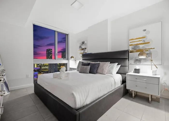 Die 51 m² große Ferienwohnung King Of Miami - Downtown Free Parking Pool Gym liegt im Stadtviertel Downtown Miami von Miami, 19 Minuten Gehweg vom Pérez Kunstmuseum Miami entfernt und bietet einen Whirlpool. Vor einem erfrischenden Bad können sich die Gäste an einem privaten Swimmingpool entspannen.
